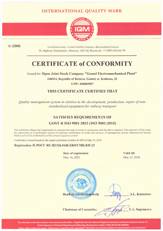 Сертификат соответствия №ЕАЭС BY.112.02.01. ТР003 064.01.00149